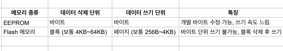 임베디드 시스템에서 데이터를 저장할 때, 시스템이 전원을 꺼도 유지되어야 하는 정보들이 있다. 예를 들어, 장치의 설정 값, 로그 데이터, 고유한 식별 번호 등이 이에 해당한다. 이를 위해 사용되는 대표적인 비휘발성 메모리 중 하나가 EEPROM(Electrically Erasable Programmable Read-Only Memory)이다.이번 글에서는 EEPROM의 개념, 특징, 동작 원리, 그리고 임베디드 시스템에서의 활용 방안을 살펴보겠다.⸻1. EEPROM이란?**EEPROM(Electrically Erasable Programmable Read-Only Memory)**은 전기적으로 데이터를 지우고 다시 기록할 수 있는 비휘발성 메모리이다.과거에는 PROM(Programmable ROM)이나..